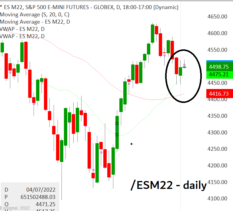 The Market Profile value areas and ShadowTrader Pivots for /ESM22 and /NQM22 Futures are posted free every morning in the ShadowTrader Swing Trader newsletter.