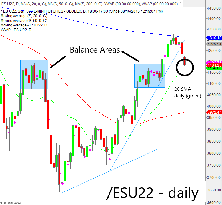 The Market Profile value areas and ShadowTrader Pivots for /ESU22 and /NQU22 Futures are posted free every morning in the ShadowTrader Swing Trader newsletter.